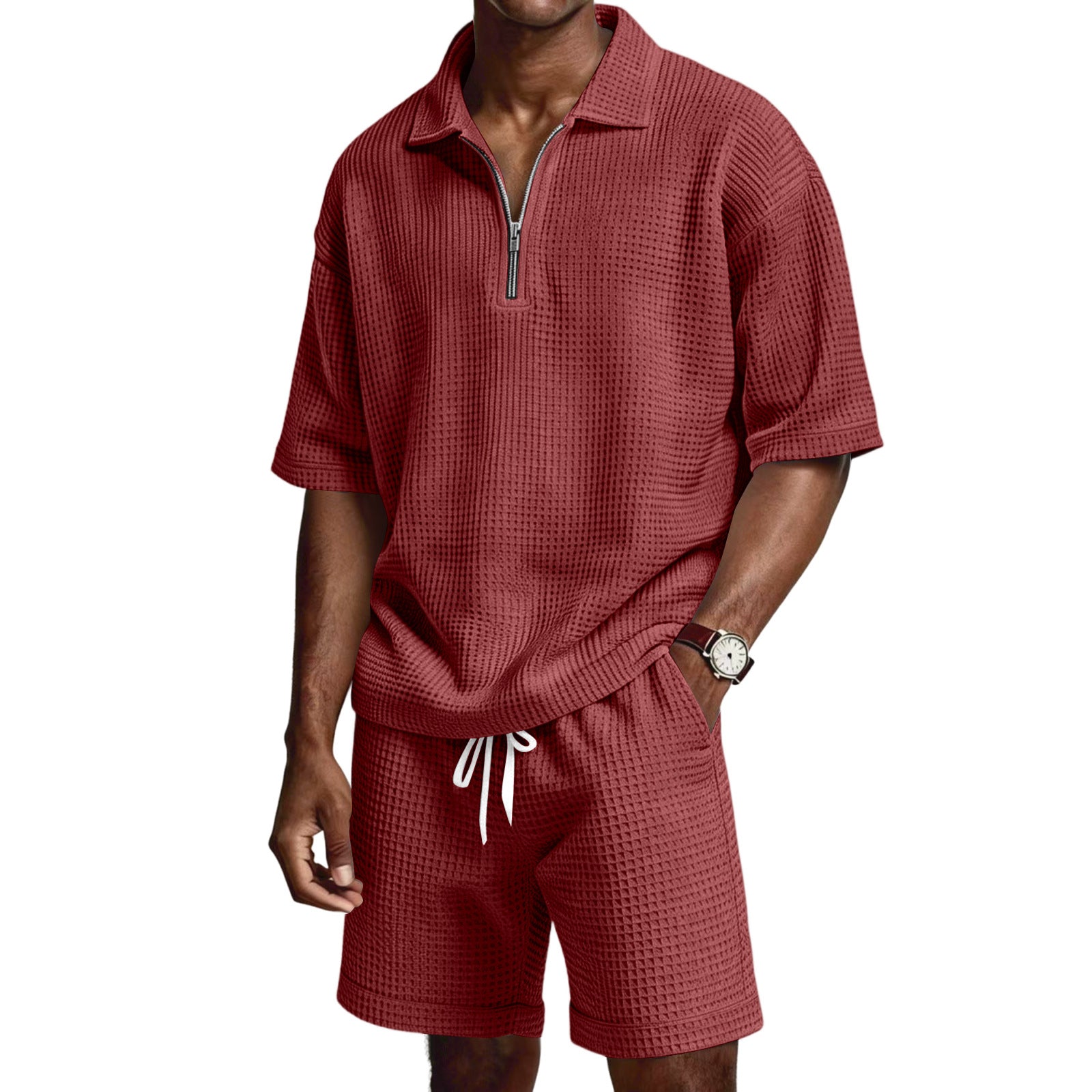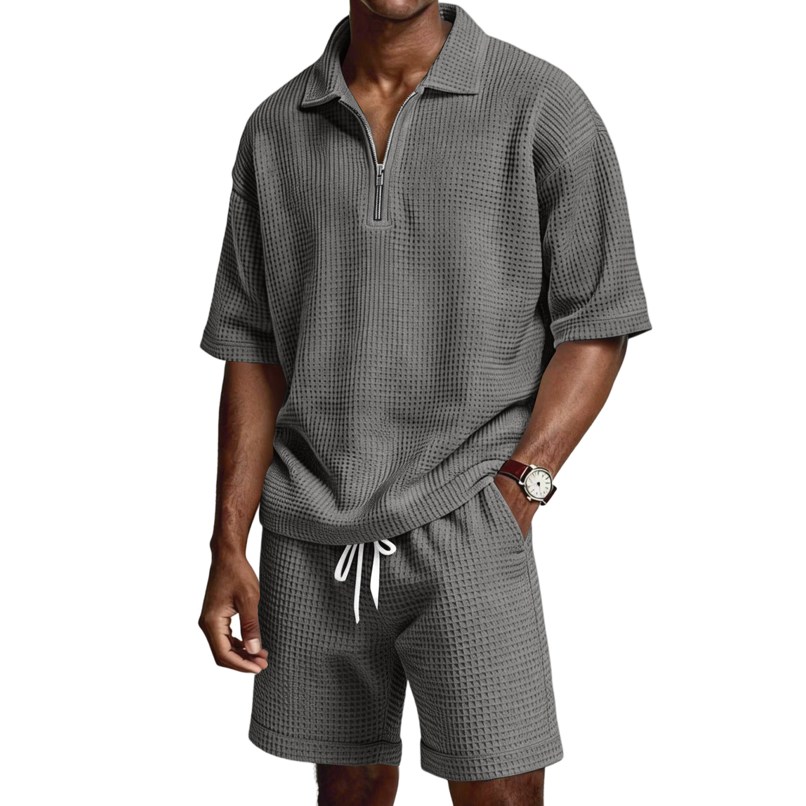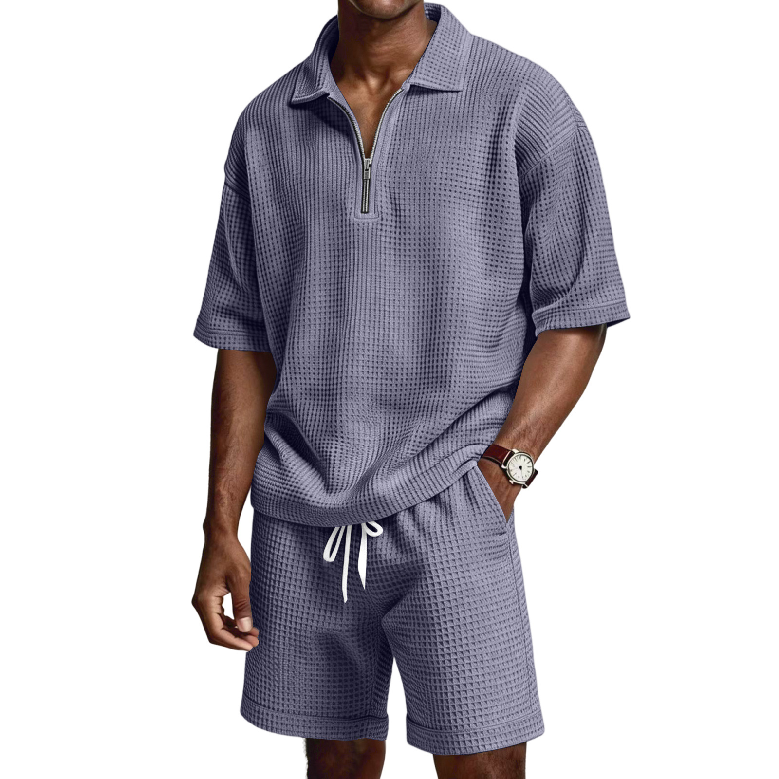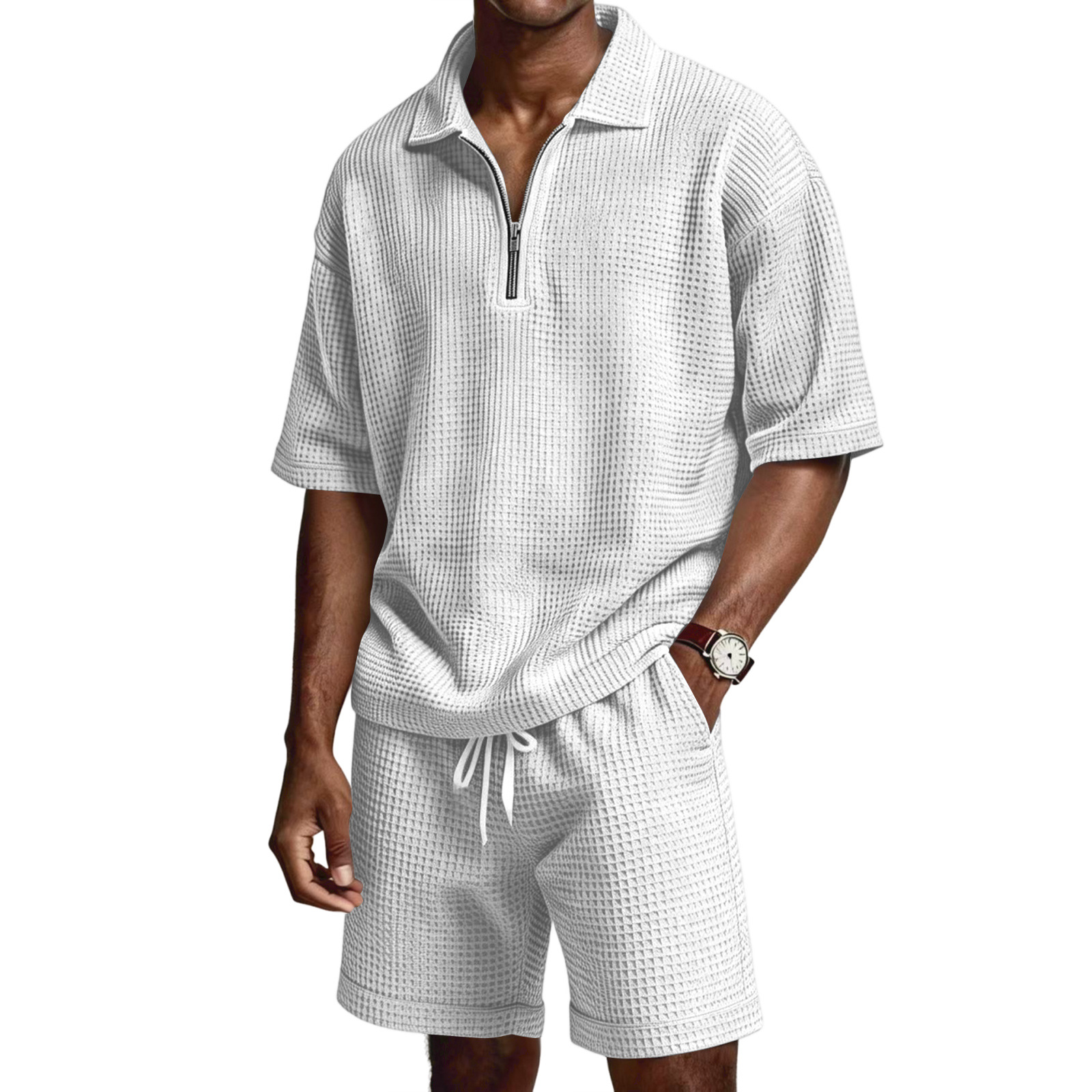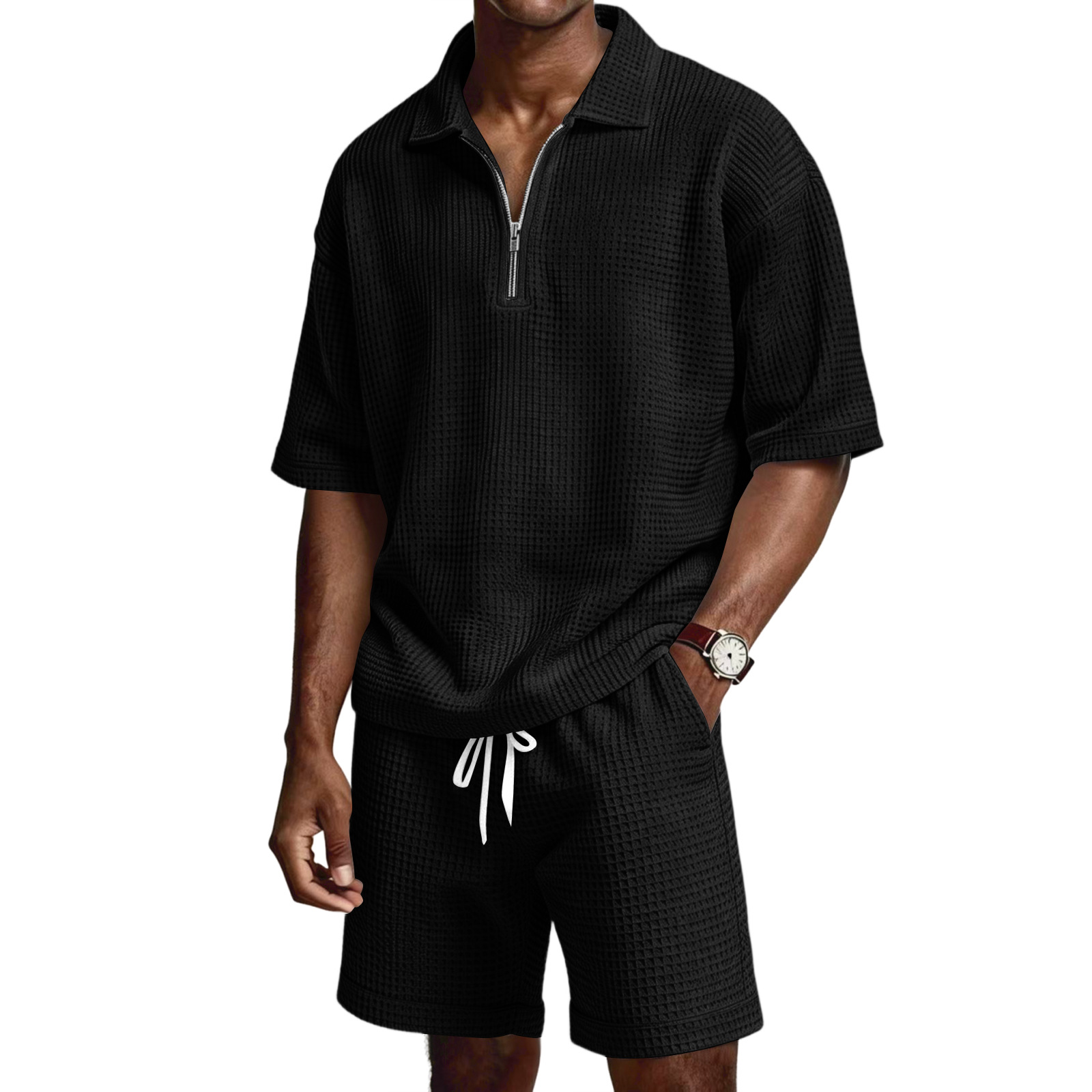 Men's Zip-Up Short-Sleeve Shorts Set
